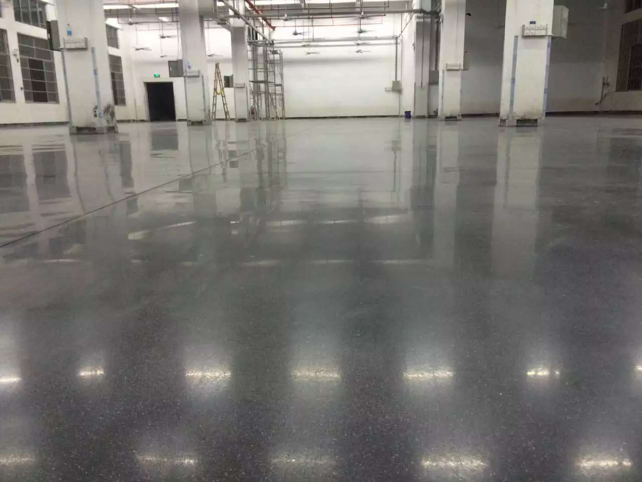 較初先要把地面,也就是我們說(shuō)的基層表面清理干凈,然后把舊的基層或者低洼處要進(jìn)行填補(bǔ),然后把高滲透密封固化劑倒在地面上,其會(huì)自由流動(dòng)滲透,這個(gè)時(shí)候可以用刮子進(jìn)行輕刮,在觀(guān)察基面的密實(shí)程度和滲透狀況過(guò)程中,對(duì)地面進(jìn)行涂刷處理,至少要保證三遍以上這樣效果更好,然后等到滲透反應(yīng)完成之后清理多余的材料,在完工后的一天后,對(duì)基面進(jìn)行拋光處理。